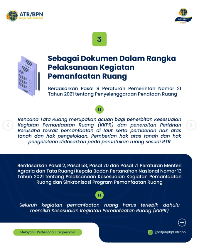 3. Sebagai dokumen dalam rangka pelaksanaan kegiatan pemanfaatan ruang