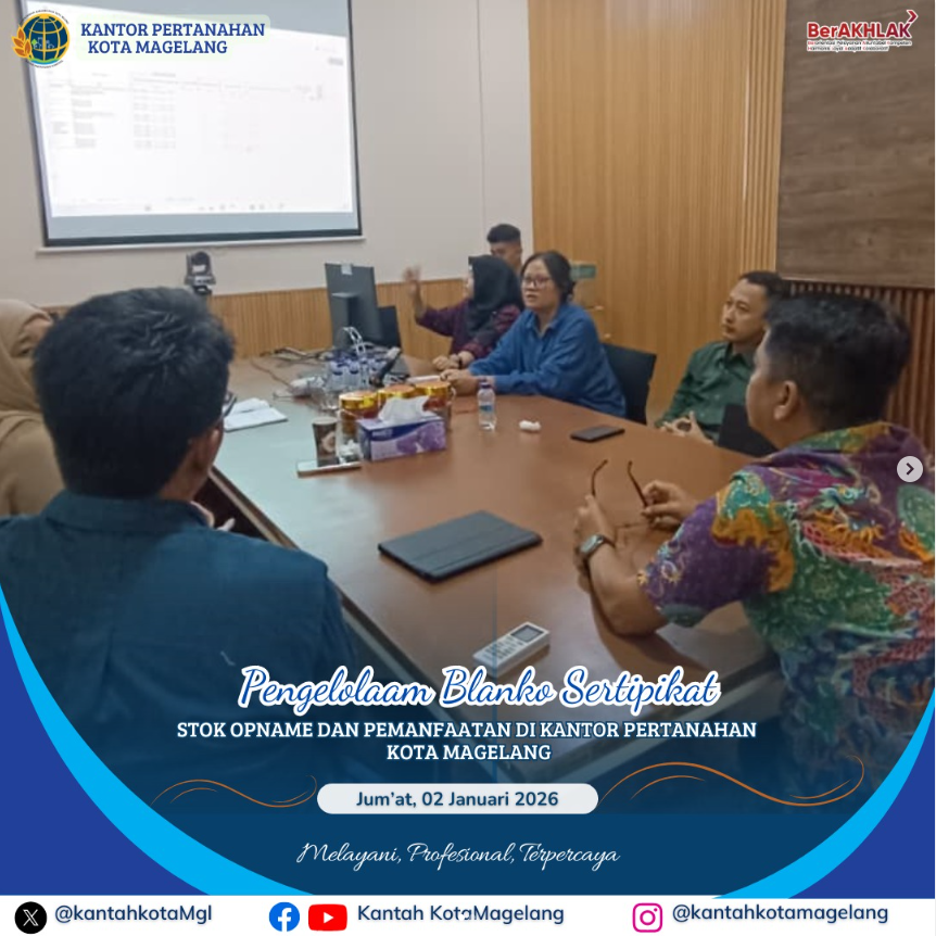 Mengawali tahun 2026 Kantor Pertanahan Kota Magelang melaksanakan rapat koordinasi terkait stok opname dan penggunaan blanko sebagai langkah strategis untuk memastikan ketersediaan dan pengelolaan blanko berjalan dengan tertib, efisien, dan…